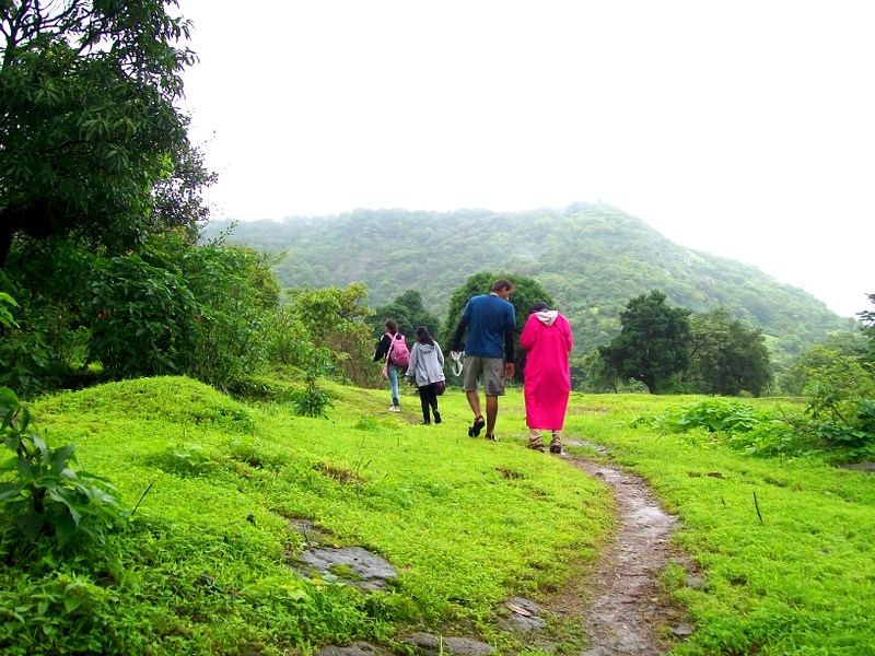 | On the way up (Micro Trek), First timer pushing themselves and Dinesh and Raka sir working out the plans for the day |