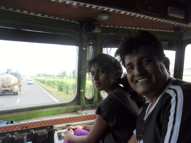 sadhana and me sharing the seat next to the driver