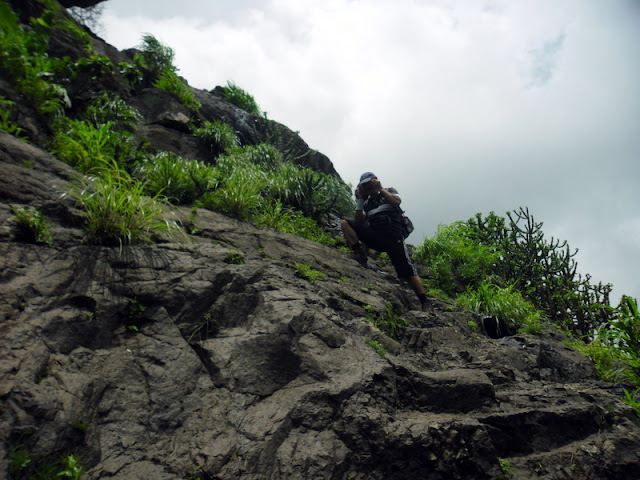 Major climb here is through rocky section. on the right side one can see water stream flowing.This climb was atleast tiring for me , probably because it was not raining today and the atmosphere was too humid.
