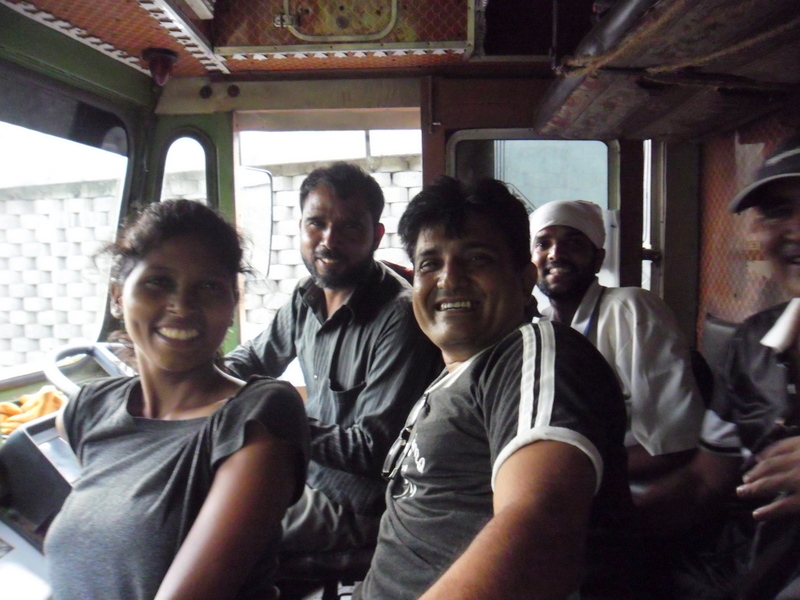 and as luck was with us and in hardly 5 mins we got a lift from a lorry Driver who was travelling to Goa. We were 6 people who all jumped behind the driver and were on the way to Mumbai.