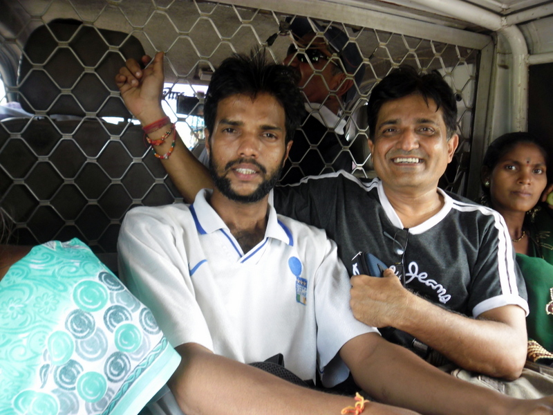 Bhushan and me cramped behind and watch om sir in the front next to driver behind the grill…