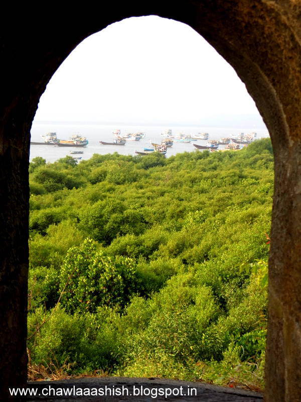There are lots of autoriskha which ply from Vasai railway station to Vasai fort. But then they cost you a bomb, 120 Rs and that too for a distance of  just 6-7 kms. I dropped the idea of taking auto and came little further out of the station and inquired about the buses going to the fort. Luckily the Bus stop is just 5 minutes walkable distance from the station. The bus arrived in 5 minutes bearing the board Killebunder on it.The bus ticket cost me only Rs 15. A bus ride of 20 minutes and I reached Vasai Fort. Meanwhile while travelling in the bus I called Femina who stays in Vasai  to join me if possible, to her credit she not only agreed but  reached the fort very quickly.