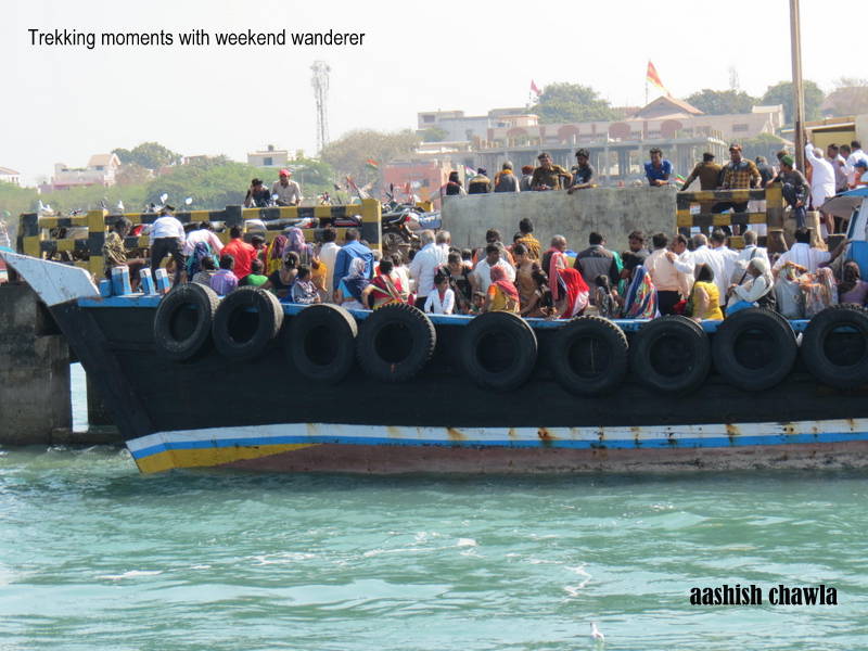 Luckily We see a boat all set to go (Though it was very crowded), Without giving any further thought, we just jumped into it. We knew that, even if the next boat is anchored it will leave only once it is completely filled, which meant loss of time. Aur time hi toh nahi tha hamare pass ! Rahi baat jump marne ki, Yeh Mumbai ki local train me chadne ki practice thi jo yahan kaam aa gayi .
