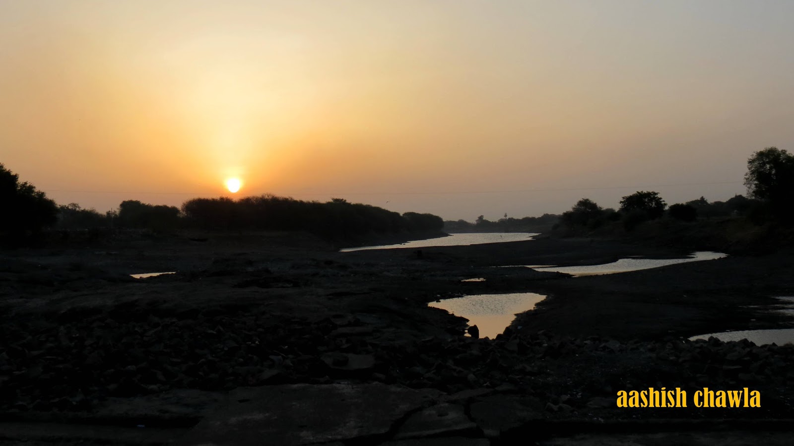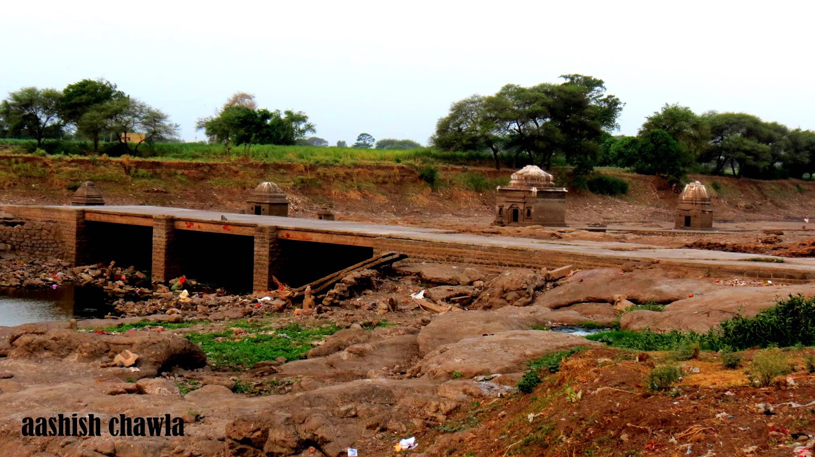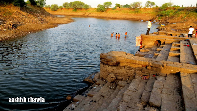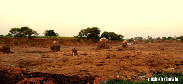 Walking little further from the temple we come across this bridge which joins the Chandori to Saykheda village and behind this bridge one can see a series of small temples on the river bed and the on the other side of the river the sun was rising in all its glory, painting the scenery all around in golden sheet.