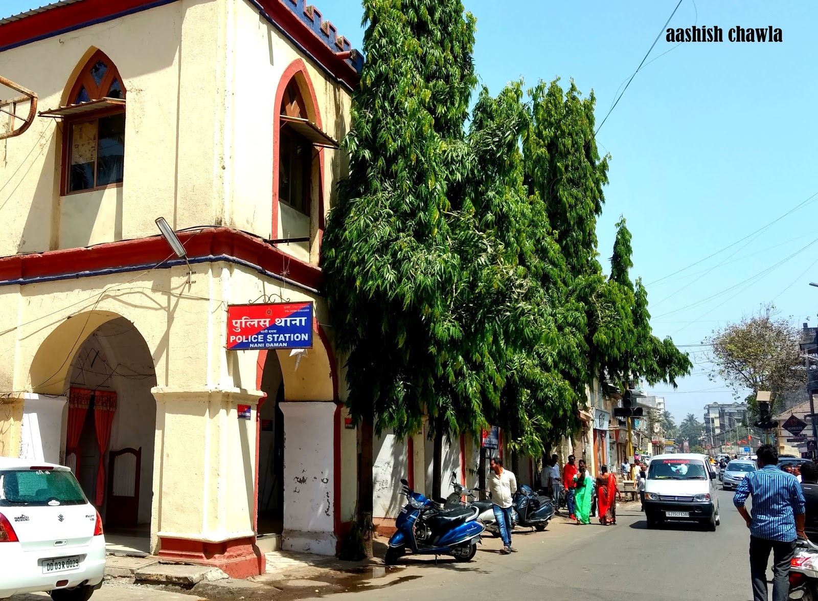 Our first destination of interest was to explore Nani Daman Fort. Hence we started walking along this market and little ahead on the opposite side of the road was another blast from the past. Yes an old police station building with typical Arc structures.