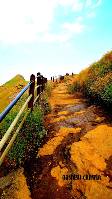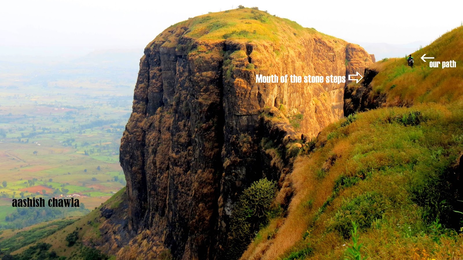 Our trek is like walking on top of the mountain till we reach the stone steps.The picture below will help you understand our trek.