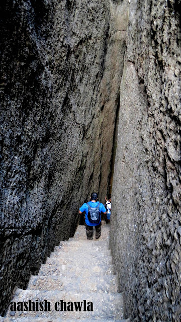 Crawling through this small entry door we again reach the narrow passage of stone stairs. so this time we got to climb to reach the top.