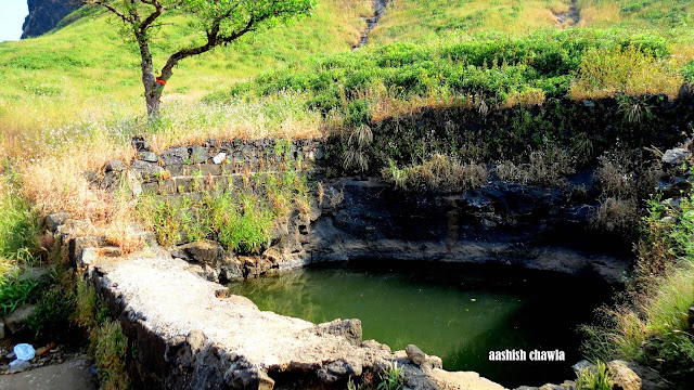 this walk through the vegetation lasted for hardly a 10 minutes and we come across a small water cistern and little further walk as we start to really feel the presence of being near our destination and we see the dome shape of the Bhandardurg ahead