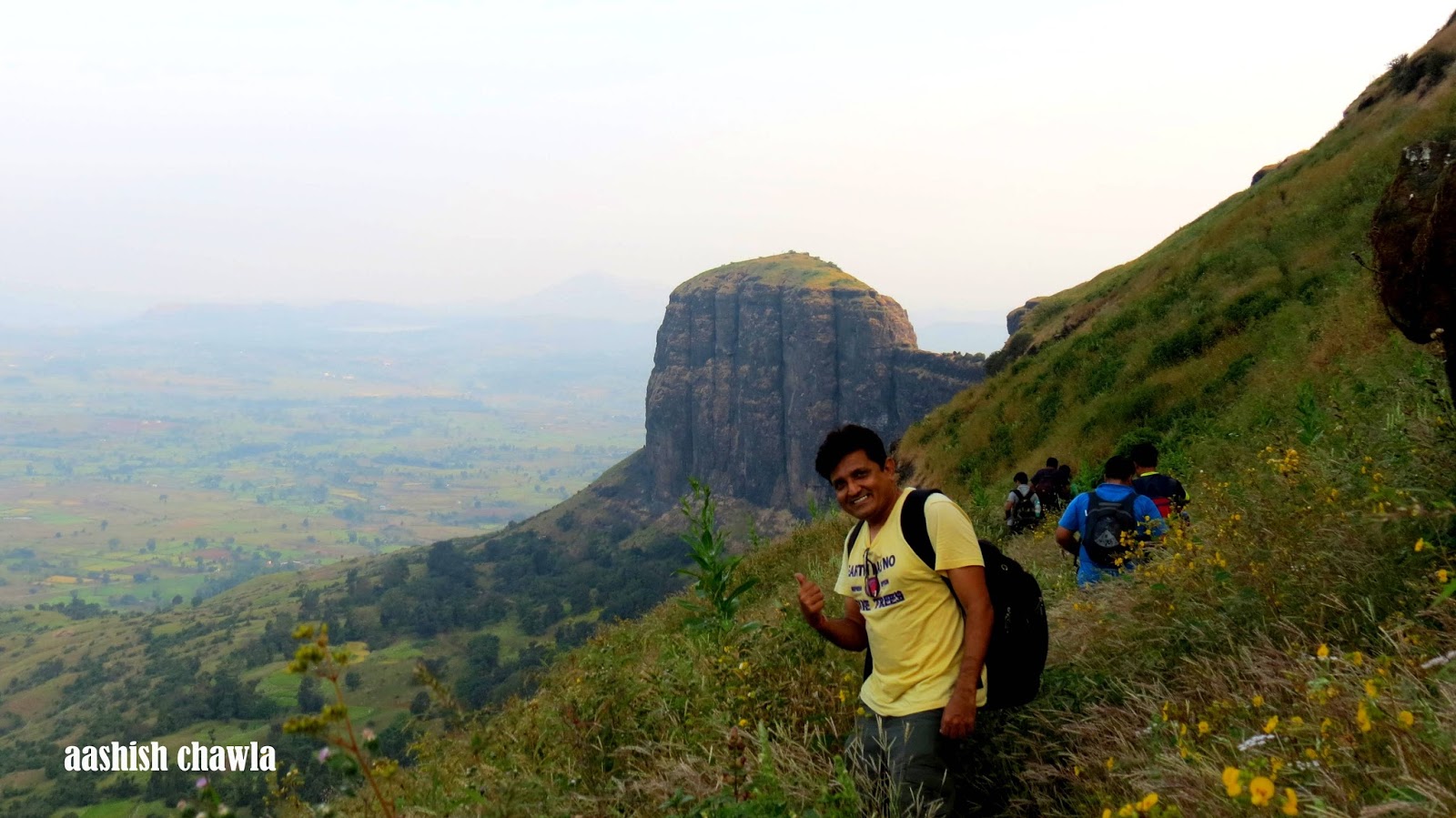 | Sanjog here trying to capture the Dome shaped mountain of Bhandardurg. |