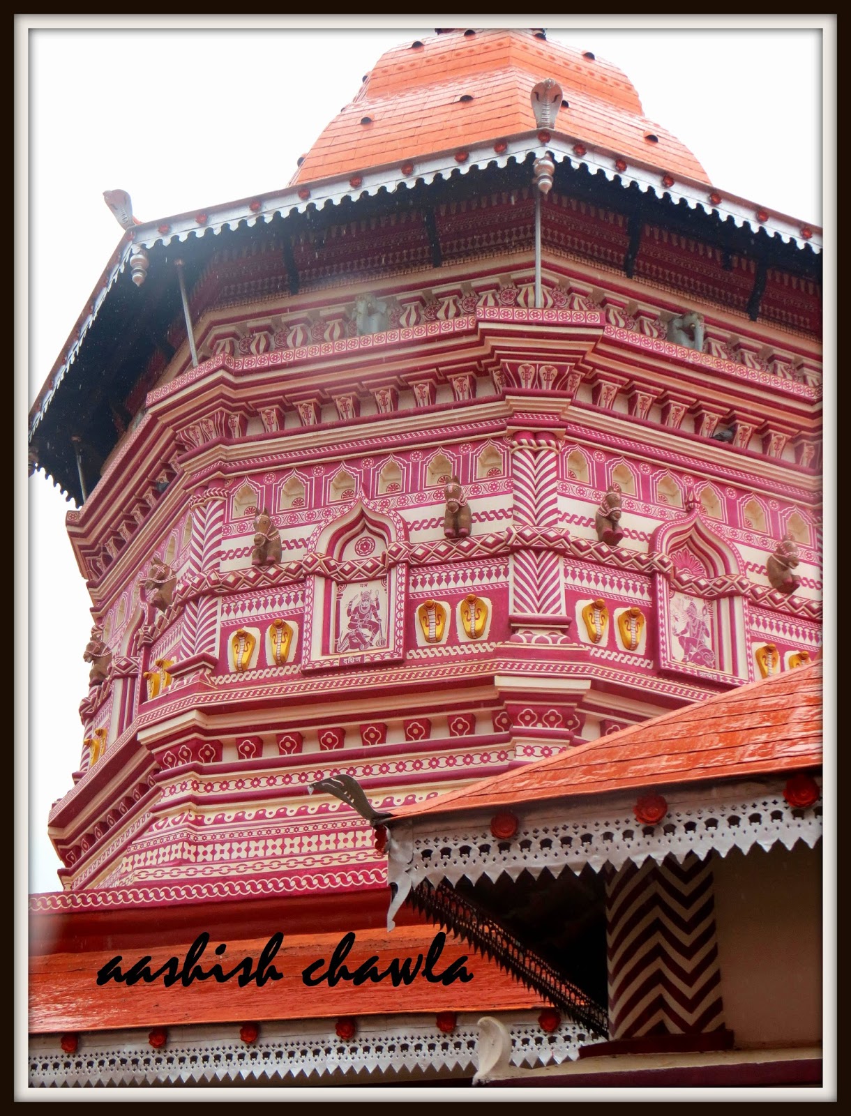 and from the Muardha Mantap one enters Mukhya Mantap which is nothing put a large prayer hall in front of “Gharbhagudi”. The Vimana is an octagonal tower which tapers into a mild arch in the normal goan temple architectural style.