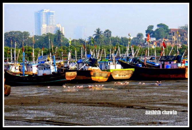I had come to Sewri Mudflats with lots of expectations to look at the Famingos, but first look at the mudflats,except for the above mentioned glories I was disappointed. Now you will be wondering why I said I was disappointed,