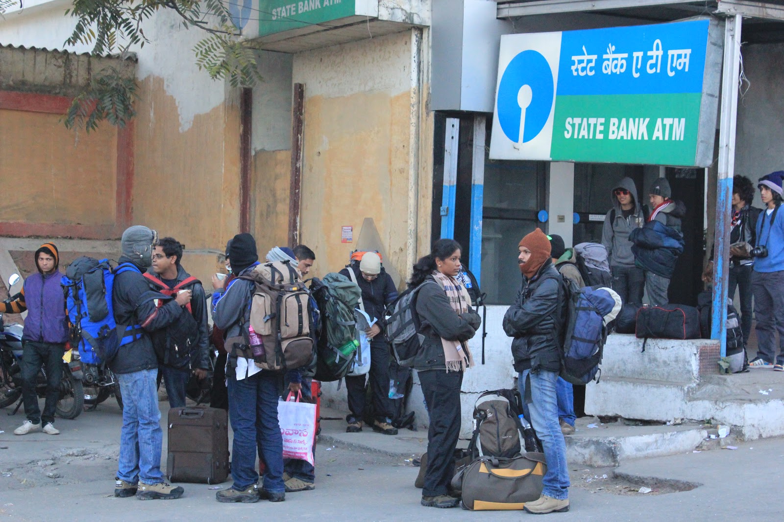 | Our team waiting at the SBI ATM |