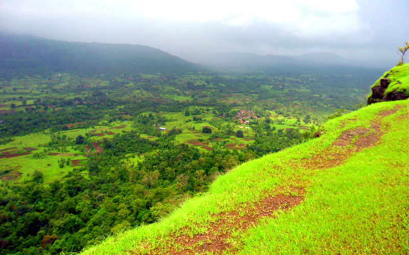 | Approaching Peth Village ,green fields on both the side and Kothaligad right in front |