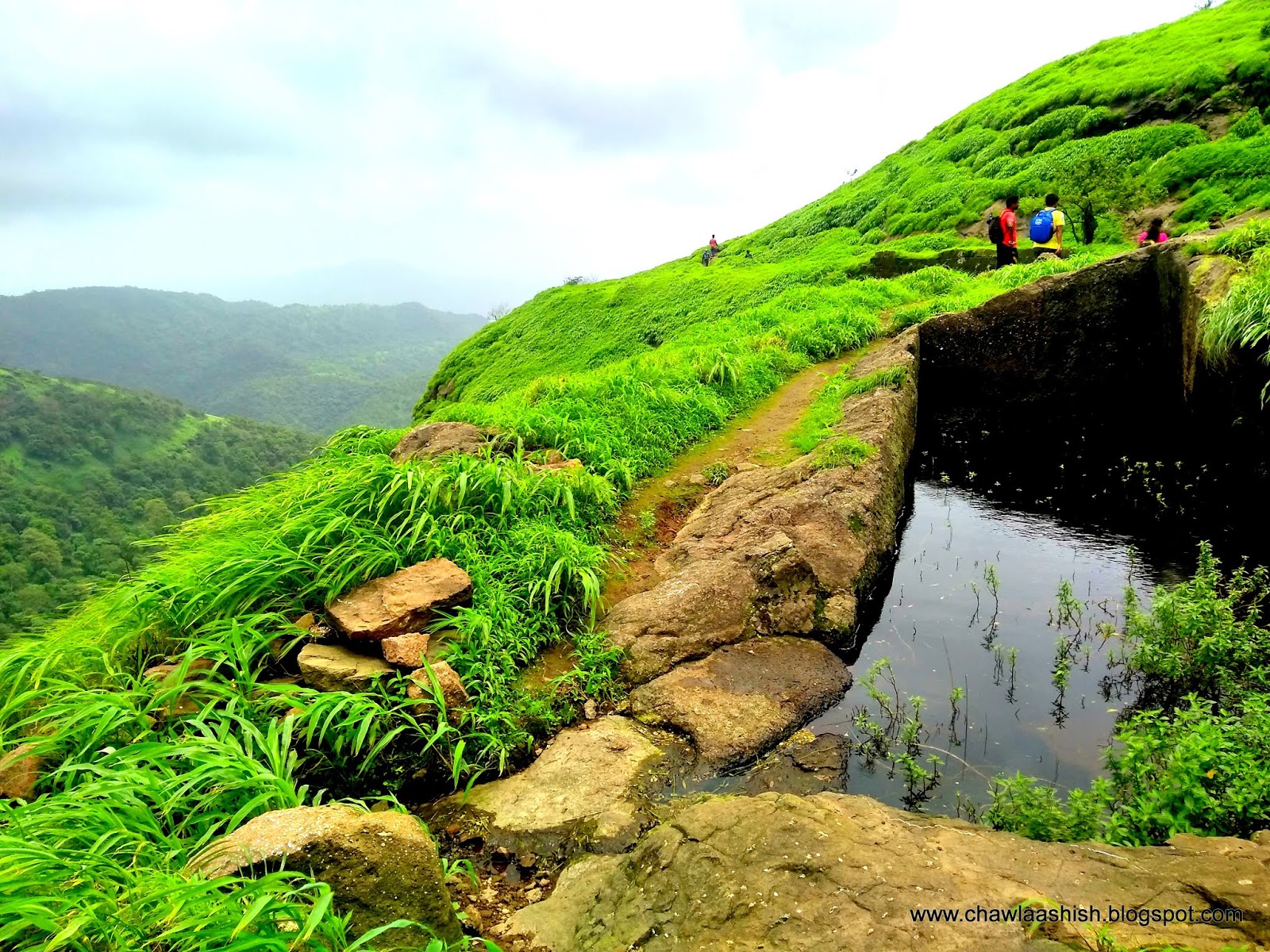 After walking for around 10-15 minutes you will see a diversion one going straight and one moving on the right, Ignore the one going to the right side, keep walking straight as the Mighty Manikgad is on your left side.