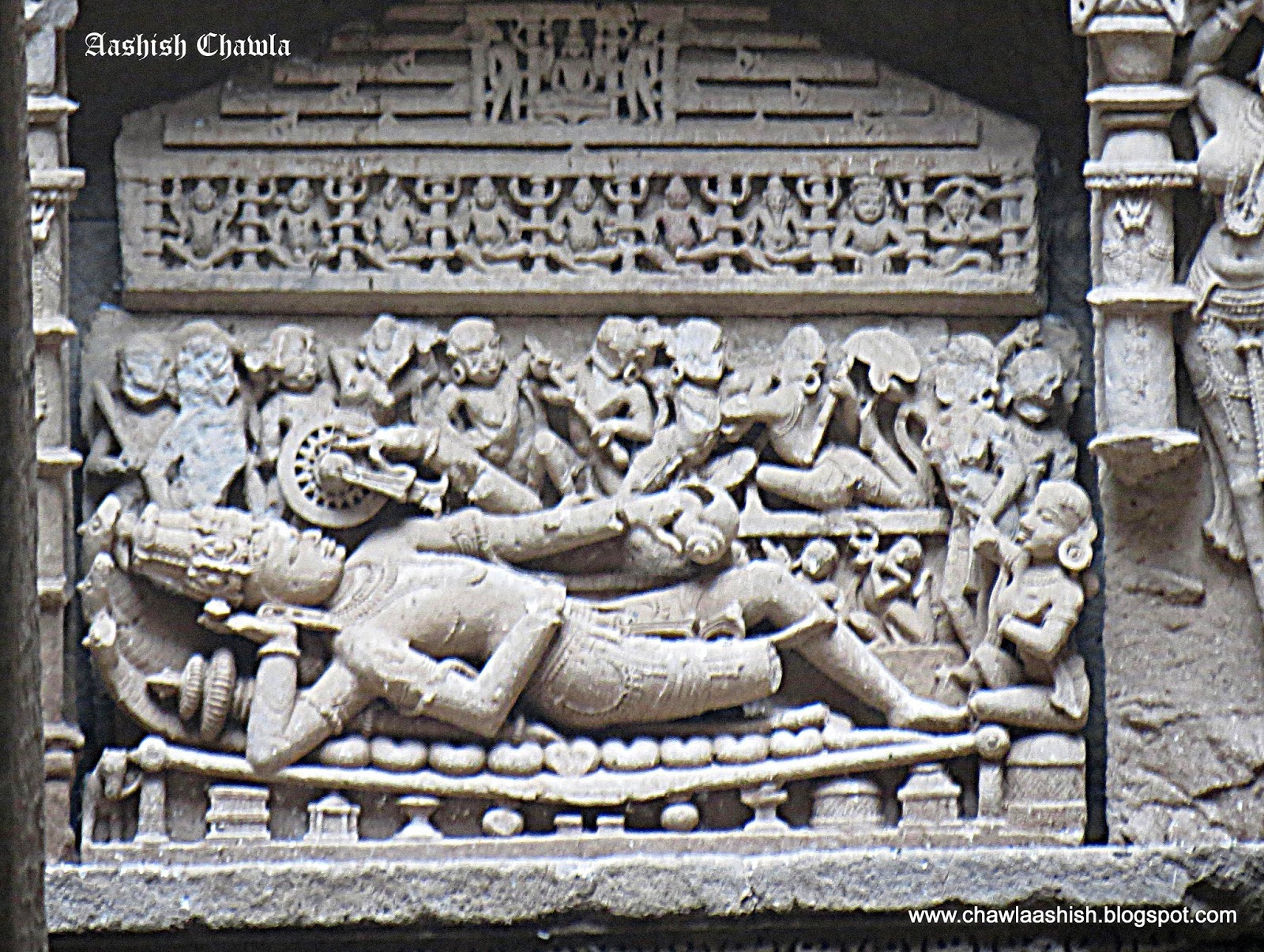 Standing in the centre portion of Rani ki vav when I look up I feel dwarfed by the plethora of mind blowing sculptures all around me. Be it be thenshola Singhar of Apsaras or different forms of dieties. I was told that there are closely 800 carved idols in Rani ki Vav !! Dimag ki bhatti ab poori gul ho gayi,