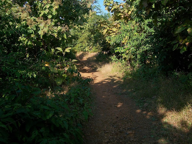 Just ahead of the motor-able road the bullock cart / Dirt road begins, You should start walking on it, this path will take you through the fields,open clearing, and forest.