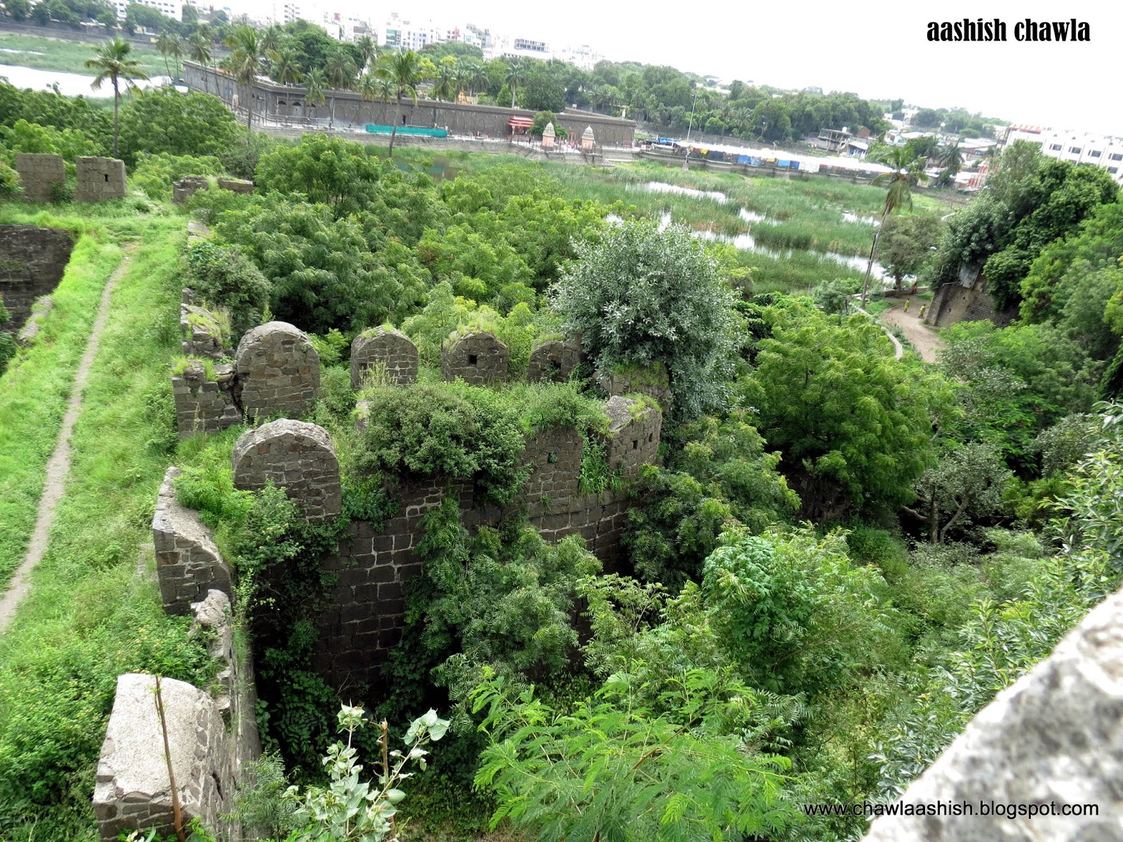 Grass has grown at most of the places hence the watchman told us to be careful of the creepy reptiles.We smiled and nodded and went on our way.The outer side of the fort walls had lots of shrubs grown but the inside portion was easily walk-able.