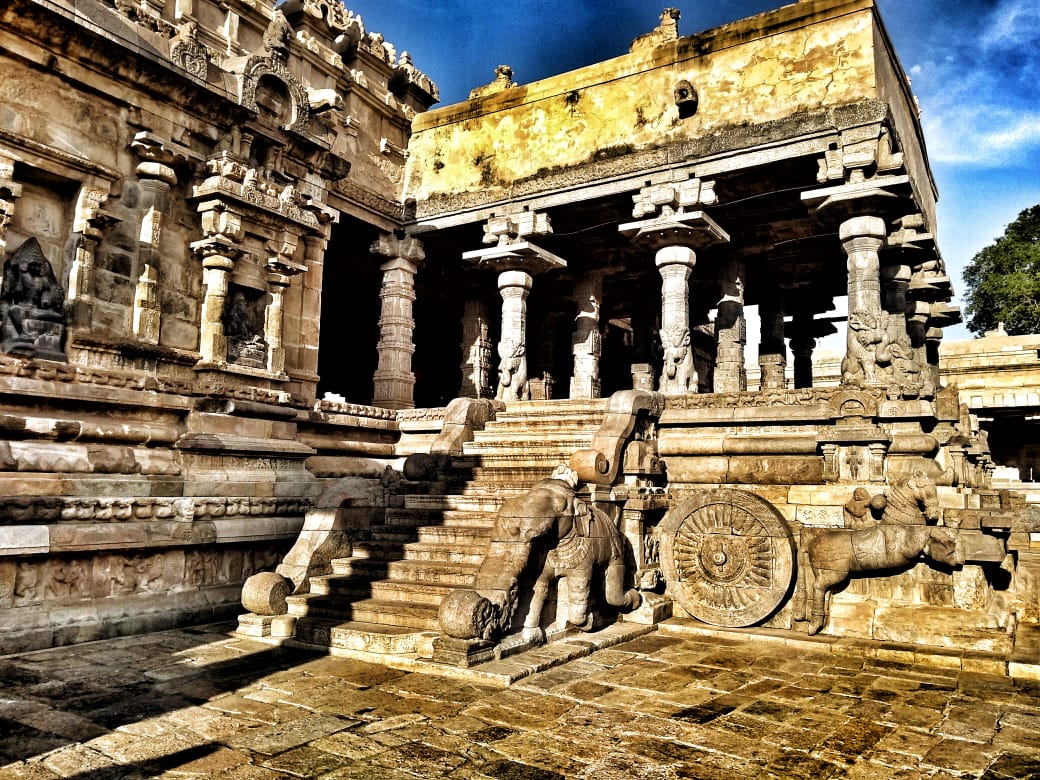 2.The Cholas built hundreds of Hindu temples across their empire. Of these four were vast complexes with all stone vimanas. The Airavatesvara temple is one of these four. The other three are the temples found in Thanjavur built by Rajaraja I, in Gangaikonda Cholapuram built by Rajendra I, and in Tribuvanam by the later era Chola king Kulottunga II. Hence Airavateshwara Temple is one of the living Chola Temple.