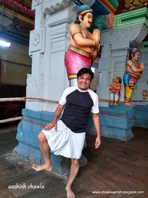 Once we were done with this we changed into the dry clothes that we were carrying with us. (They allow you to carry your clothes) mind you the changing room is just a kind of enclosure with no roof, I wish at least for ladies section they should build a decent changing room.( It’s sad that this temples get so many people from all over the places and yet they cannot provide for basic necessities) I changed into the lungi..oops sorry my South Indian friends corrected me,said it was not lungi but veshti.