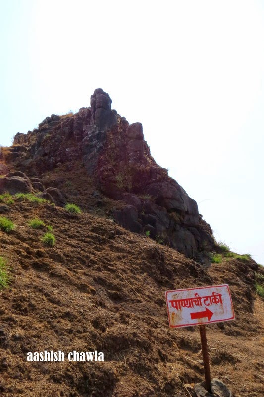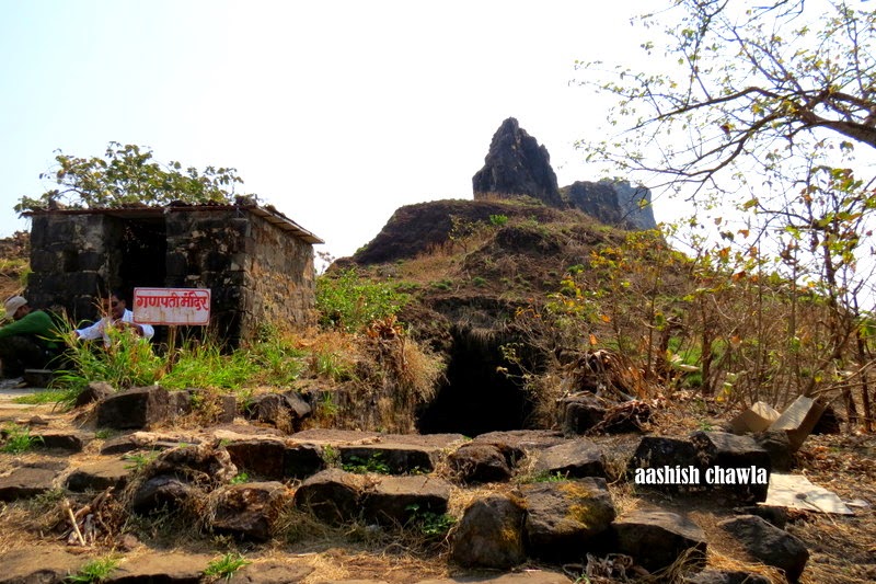 Coming out of this route we moved towards the right side, As one can see the towering fort ahead so there is little scope of losing your way here. Little walk ahead and you come across a small Ganesh temple with a water tank just next to it.